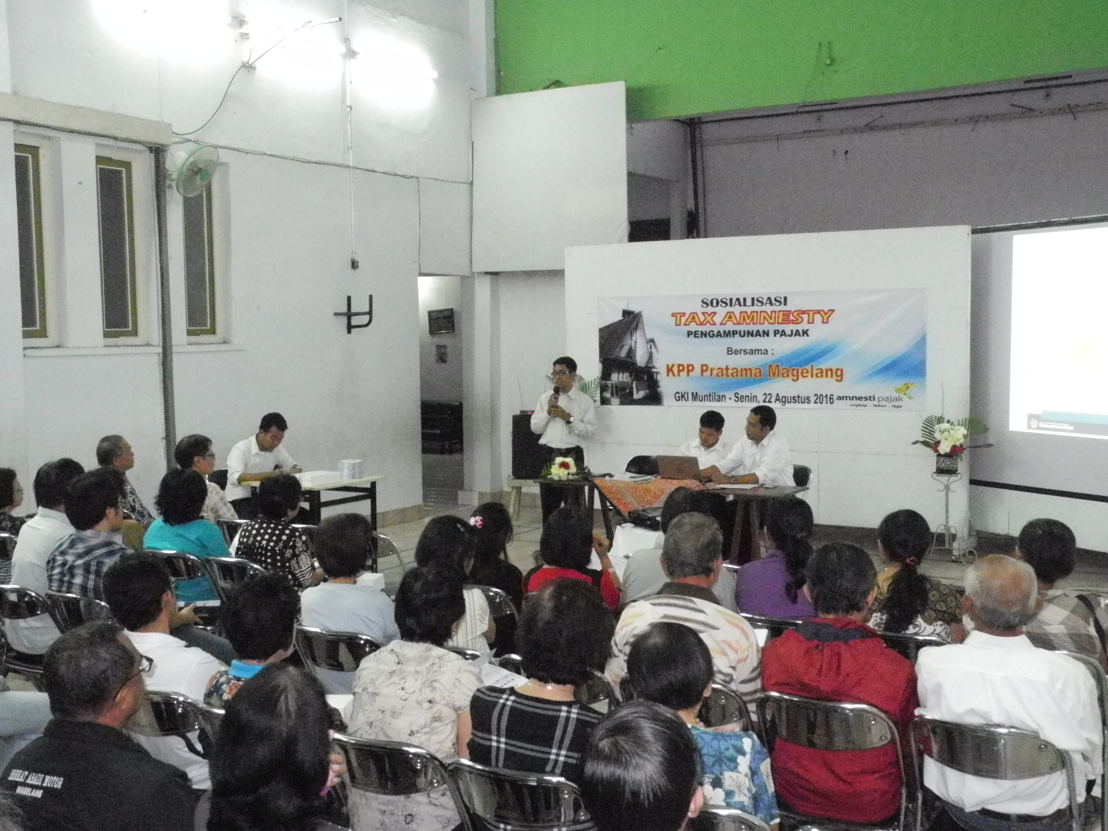 Majelis Jemaat GKI Muntilan bekerja sama dengan KPP Pratama Magelang telah mengadakan Sosialisasi Tax Amnesty pada tanggal 22 Agustus 2016 bertempat di Aula GKI Muntilan.