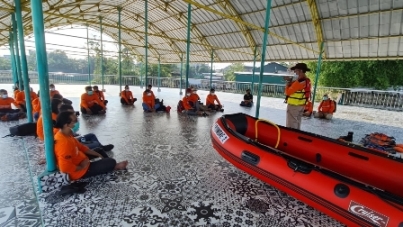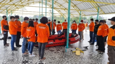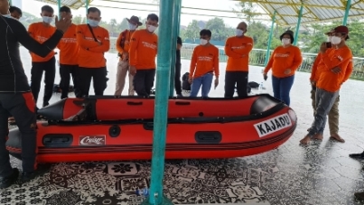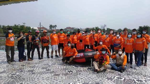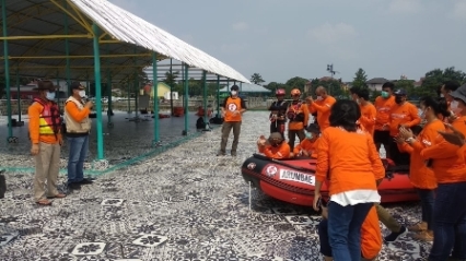 Pada sesi akhir, para peserta juga diperkenalkan secara langsung pada peralatan dan perahu karet yang digunakan saat memberikan pertolongan, melakukan praktek penggunaan perahu karet serta pertolongan dan penyelamatan di saat banjir. Puji Tuhan, cuaca sangat mendukung sehingga praktek di Situ Pondok Jagung berjalan dengan baik.