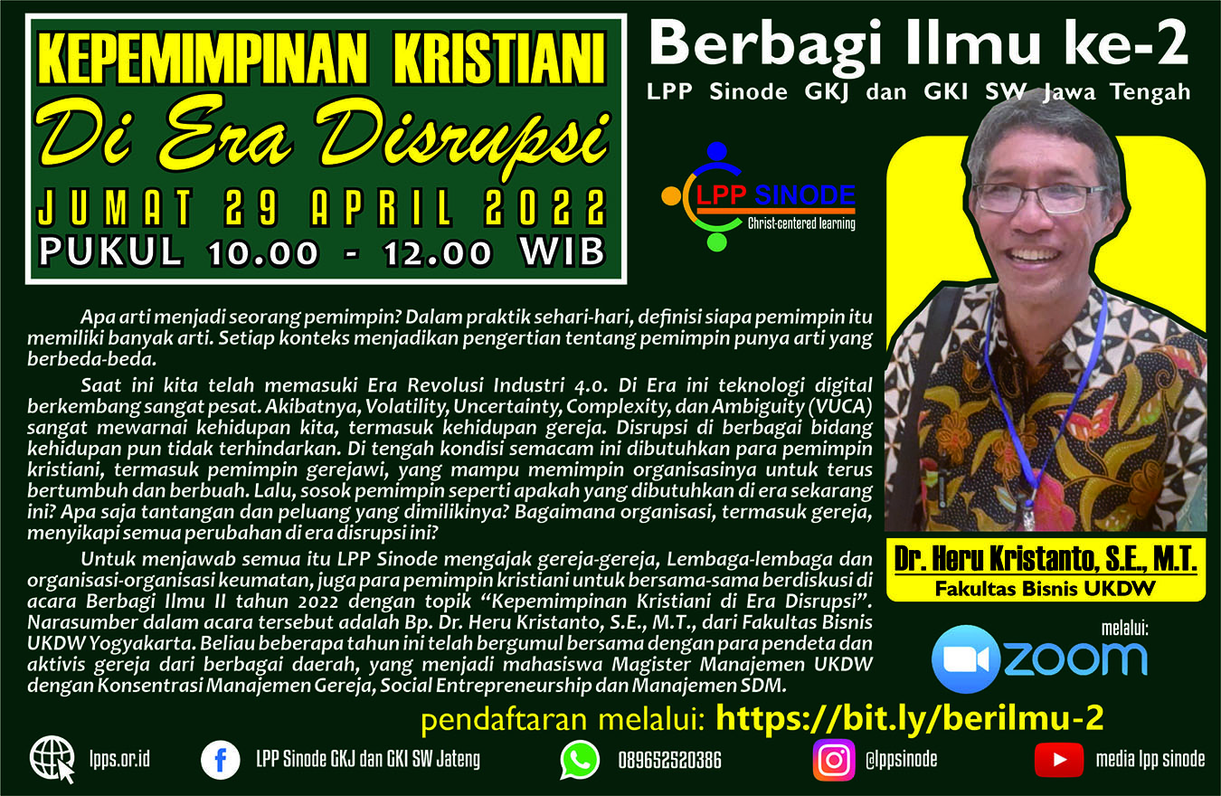 Berikut kami informasikan Kegiatan LPP Sinode GKJ dan GKI SW Jateng: Berbagi Ilmu ke-2. kegiatan ini akan dilaksanakan pada :