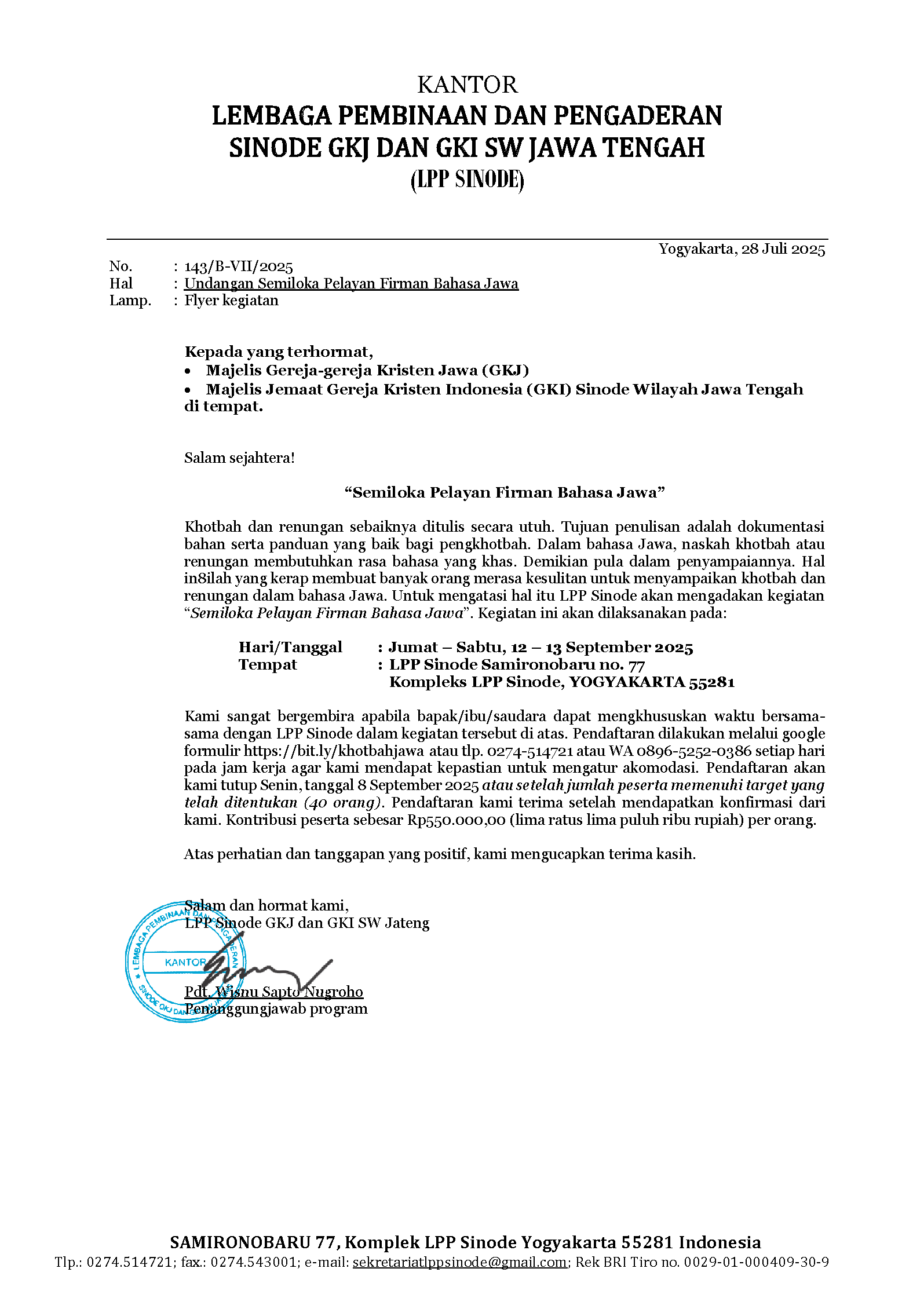 1. Semiloka Pelayanan Firman Bahasa Jawa (No. Surat Lampiran 143)