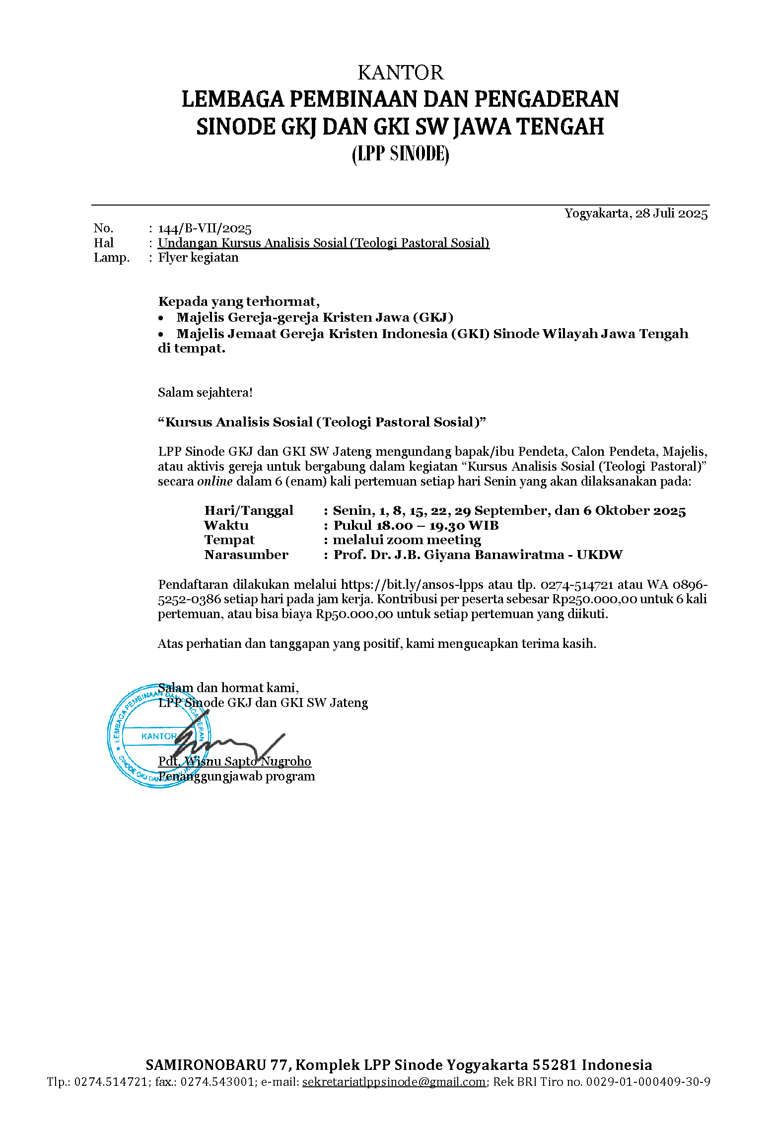 2. Kursus Analis Sosial (Teologi Pastoral Sosial) - (No. Surat Lampiran 144)