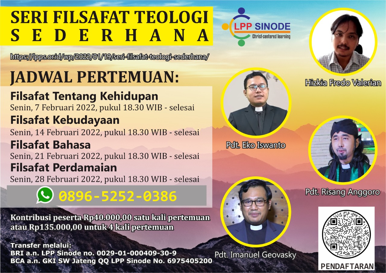 LPP Sinode mungundang para sahabat untuk belajar filsafat bersama melalui program seri filsafat sederhana. Program ini akan dilaksanakan secara berseri melalui zoom meeting setiap hari Senin pada bulan Februari 2022.