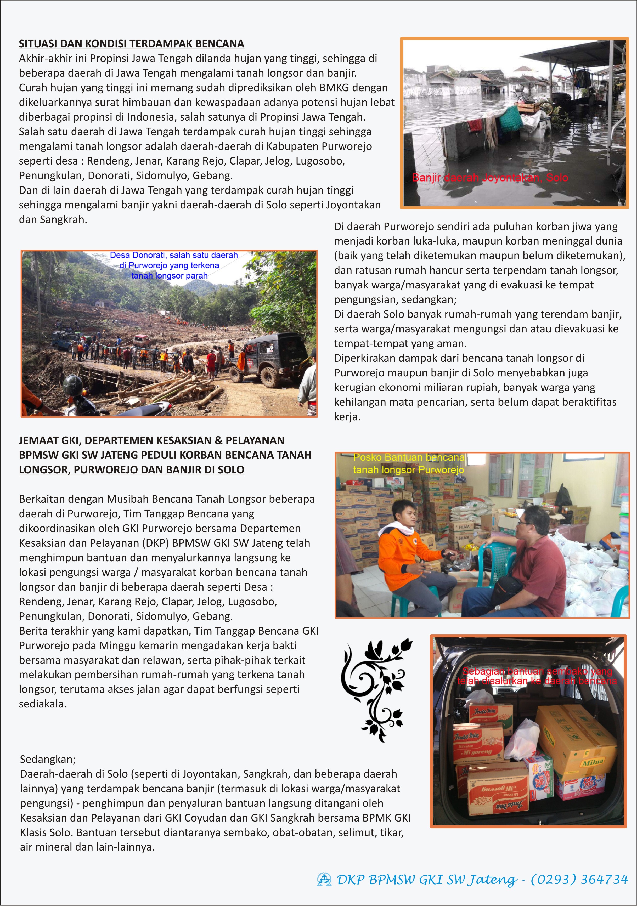Bagi Jemaat yang membutuhkan Laporan Dana Bantuan dan Penyaluran Bantuan lebih lengkap lagi, dapat dilihat di kolom materi pada Website GKI SW Jateng dengan login yang telah diberikan ke masing-masing Klasis dan Jemaat GKI lingkup SW Jateng.
