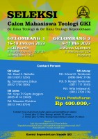 Dalam rangka rekrutmen Kader Calon Pendeta GKI, melalui Komisi Kependetaan Sinode Wilayah/KKSW GKI SW Jateng akan melaksnakan seleksi kader calon mahasiswa Teologi utusan GKI untuk tahun ajaran 2023/2024. Bagi Jemaat ...