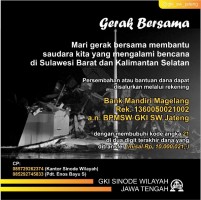 Departemen Kesaksian Pelayanan (DKP) GKI Sinode Wilayah (Sinwil) Jateng bersama Sinwil Jabar dan Jatim berupaya bersama membantu Saudara-saudara di Sulawesi Berat dan Kalimantan Selatan. TIM GKI (Gerakan Kemanusiaan Indonesia) dan ...