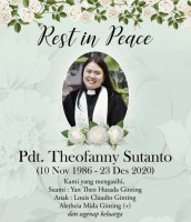 Telah dipanggil pulang ke rumah Bapa di Sorga, hambaNya yang setia Pdt. Theofanny Sutanto (GKI Gatot Subroto, Purwokerto) pada :