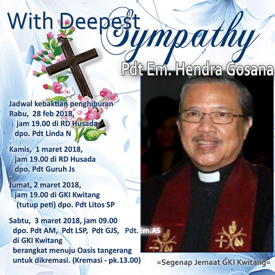 Telah dipanggil pulang ke rumah Bapa di Sorga, hambaNya yang setia Pdt. Em. Hendra Gosana pada :