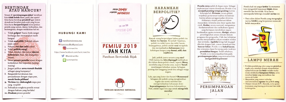 Tak terasa kita sudah berada di tahun 2019, yakni tahun dimana Indonesia akan menyelenggarakan Pemilu Serentak Pertama di Indonesia Sepanjang Sejarah. Pemilu ini akan dilaksanakan pada hari Rabu, 17 April 2019 untuk memilih Presiden dan Wakil Presiden Indonesia serta Anggota Legislatif lainnya. Marilah bersama ini kita gunakan hak suara pilih kita dengan bijak dan sesuai hati nurani kita masing - masing. Berikut ini Panduan Bertindak Bijak dalam manghadapi dan melaksanakan Pemilu 2018, semoga dapat bermanfaat bagi kita semua dan memberikan perubahan dalam kehidupan bermasyarakat, berbangsa dan bernegara.