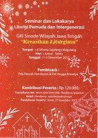 Shallom Majelis Jemaat GKI lingkup SW Jateng, perkenankanlah kami Komisi Ibadah dan Liturgi - Departemen Pemabngunan Gereja/ DPG BPMSW GKI SW Jateng akan mangadakan "Seminar dan Lokakarya Liturgi Pemuda dan ...